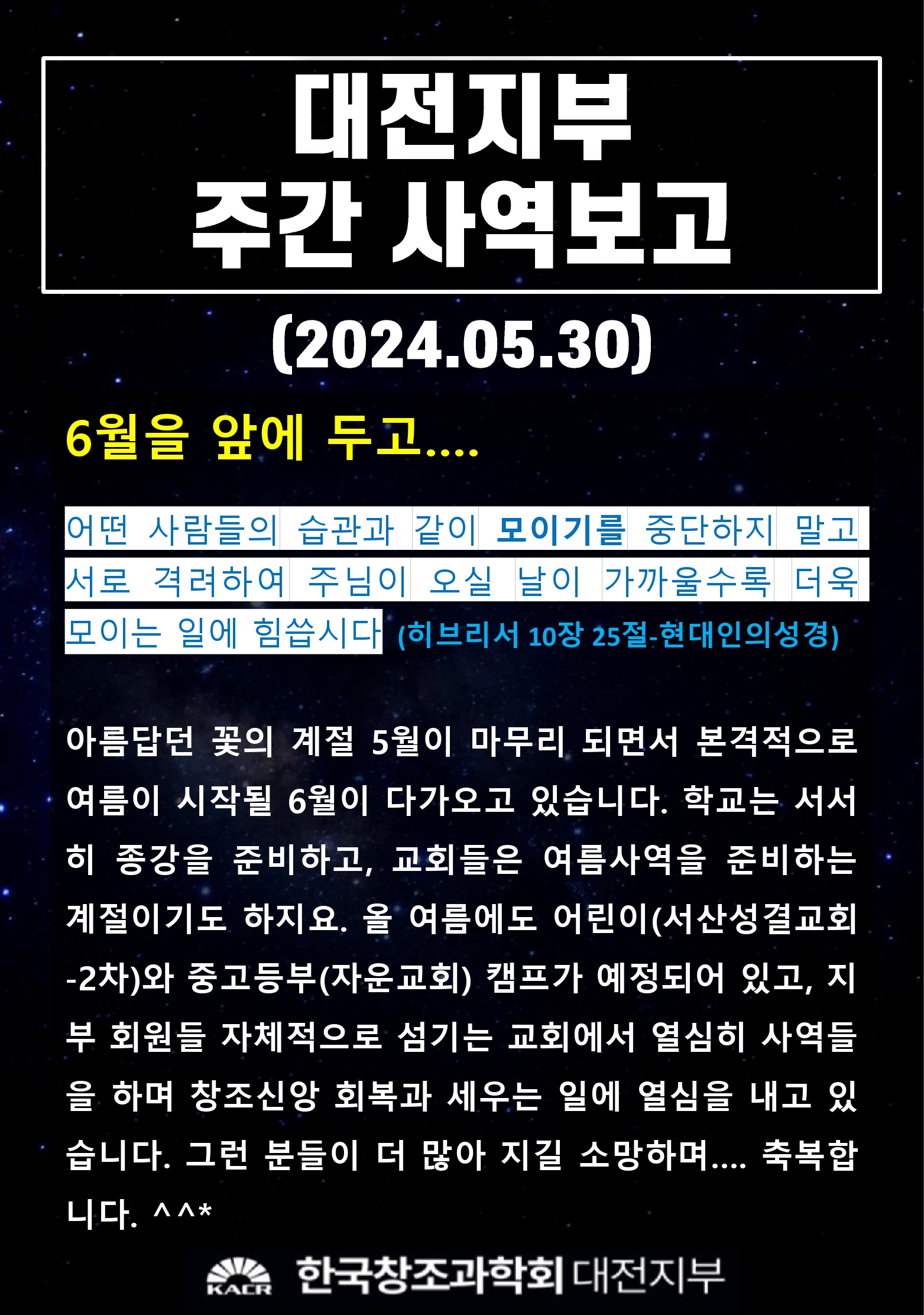 대전지부 주간(05.30) 사역 보고입니다~^^*