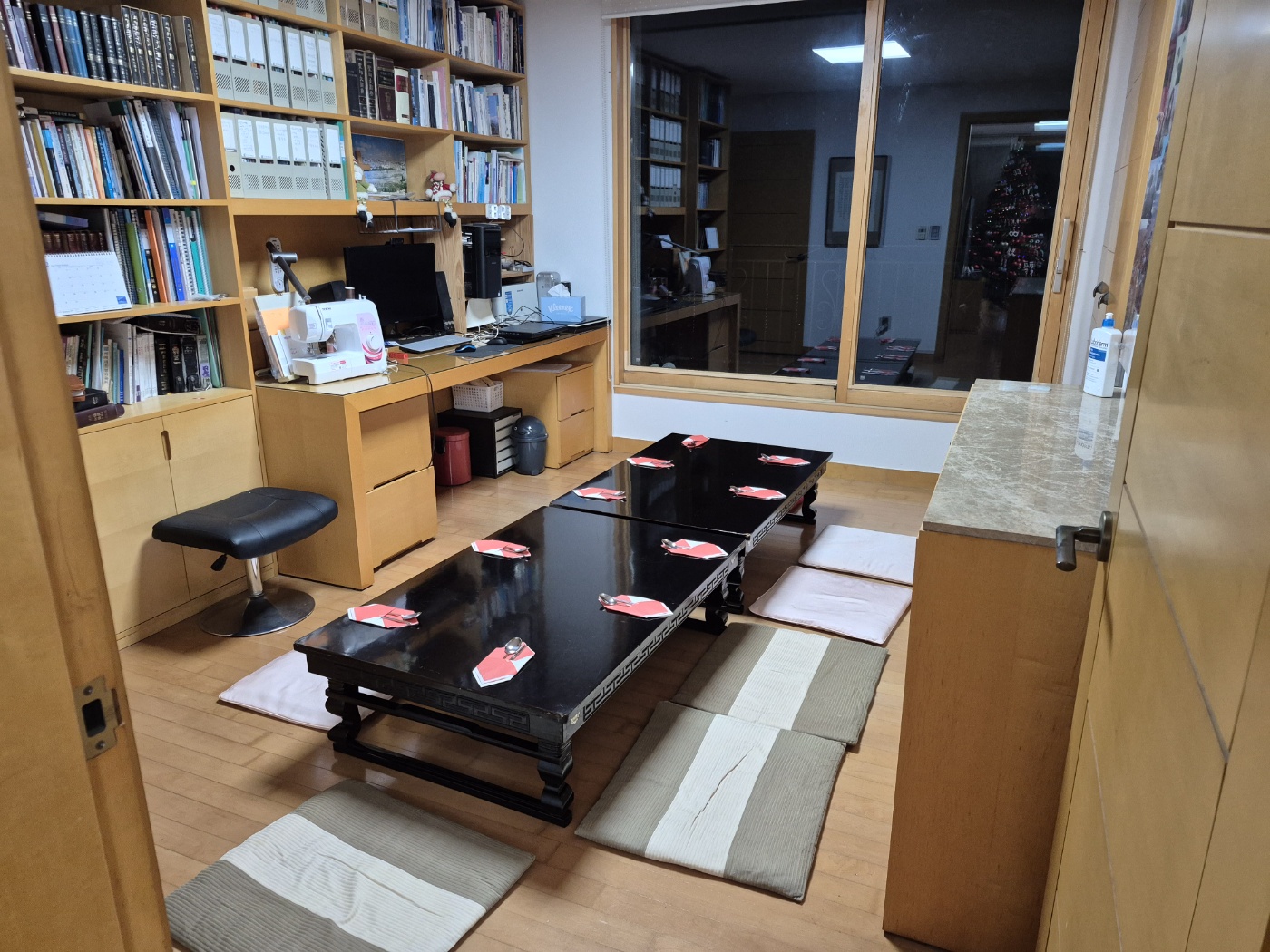 예년과 다르게 거실에 테이블을 세팅해 놓으셔서 더 모임 장소 같은 느낌이 들었습니다. ^^*