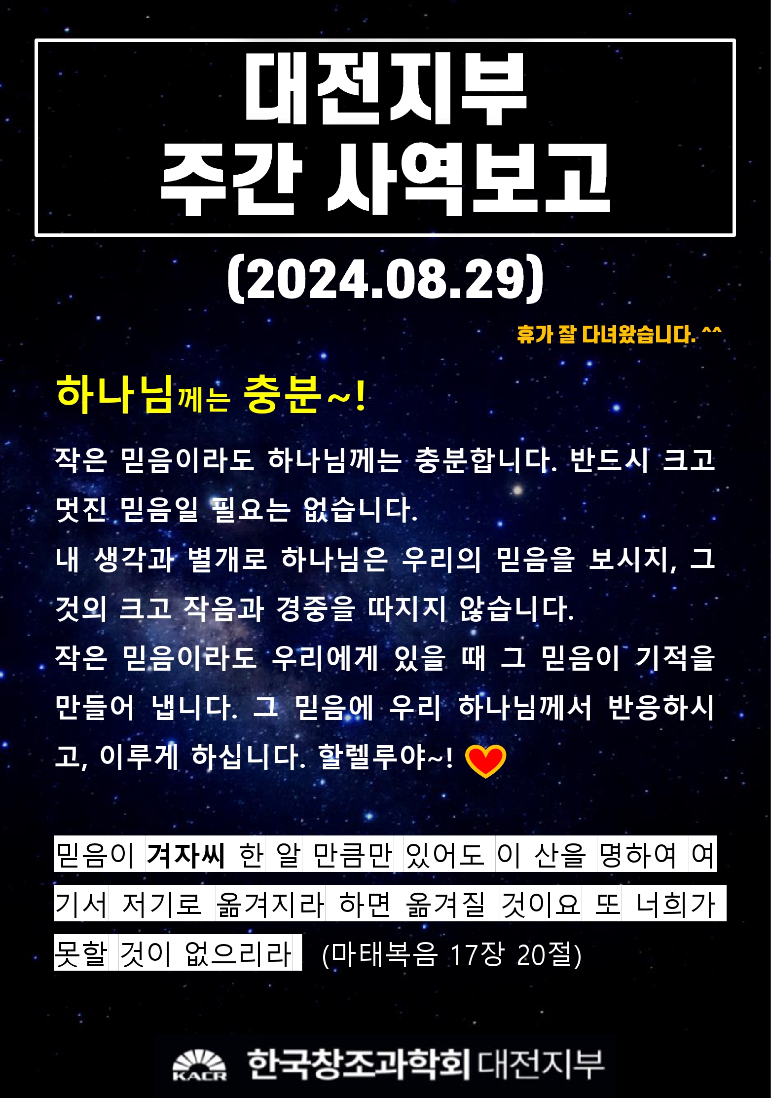 대전지부 주간(08.21) 사역 보고입니다~^^*