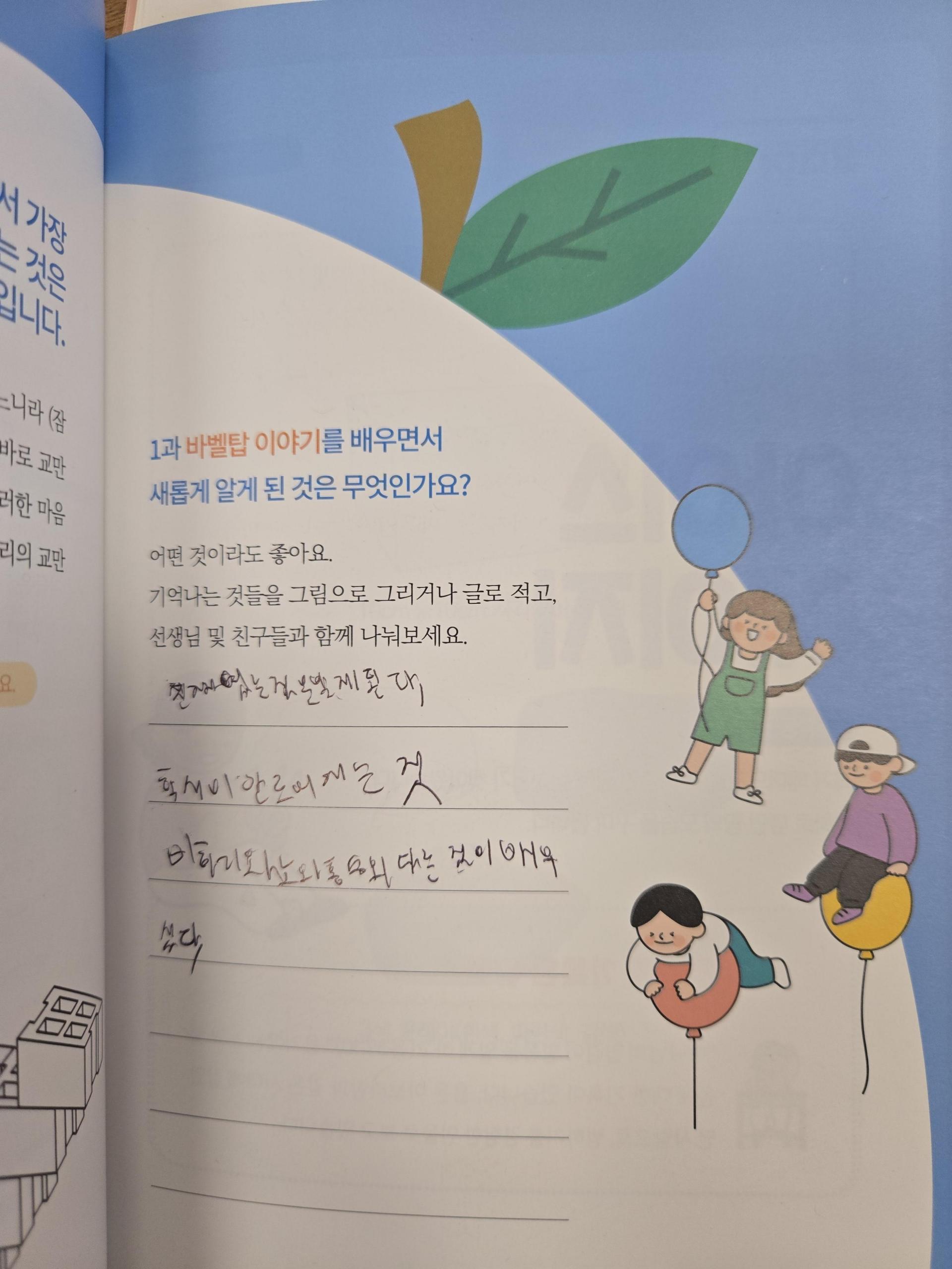 이제 1번 더 남았는데요..... 마지막까지 잘 진행되어, 아이들 맘 속에 창조신앙이 든든하게 뿌리내리길 기대하며 소망합니다. ^^*
