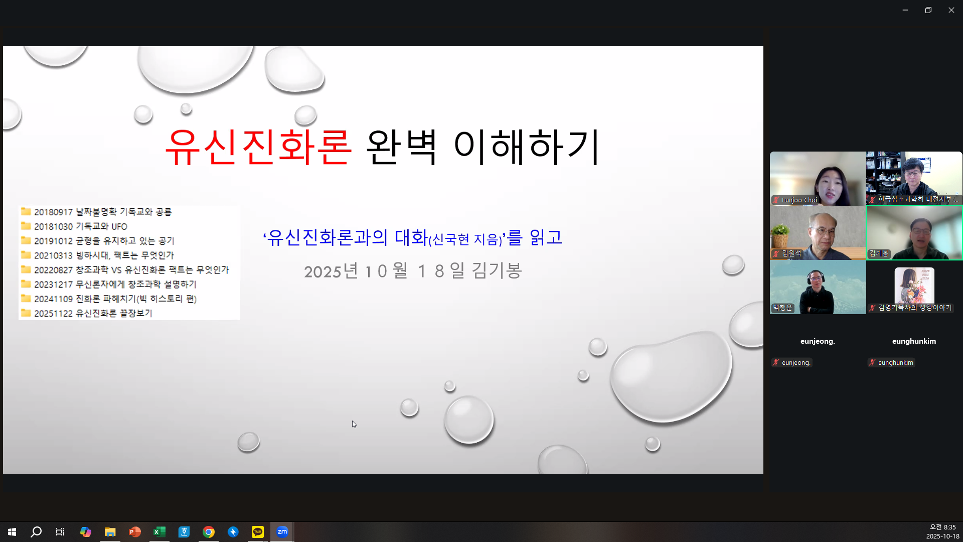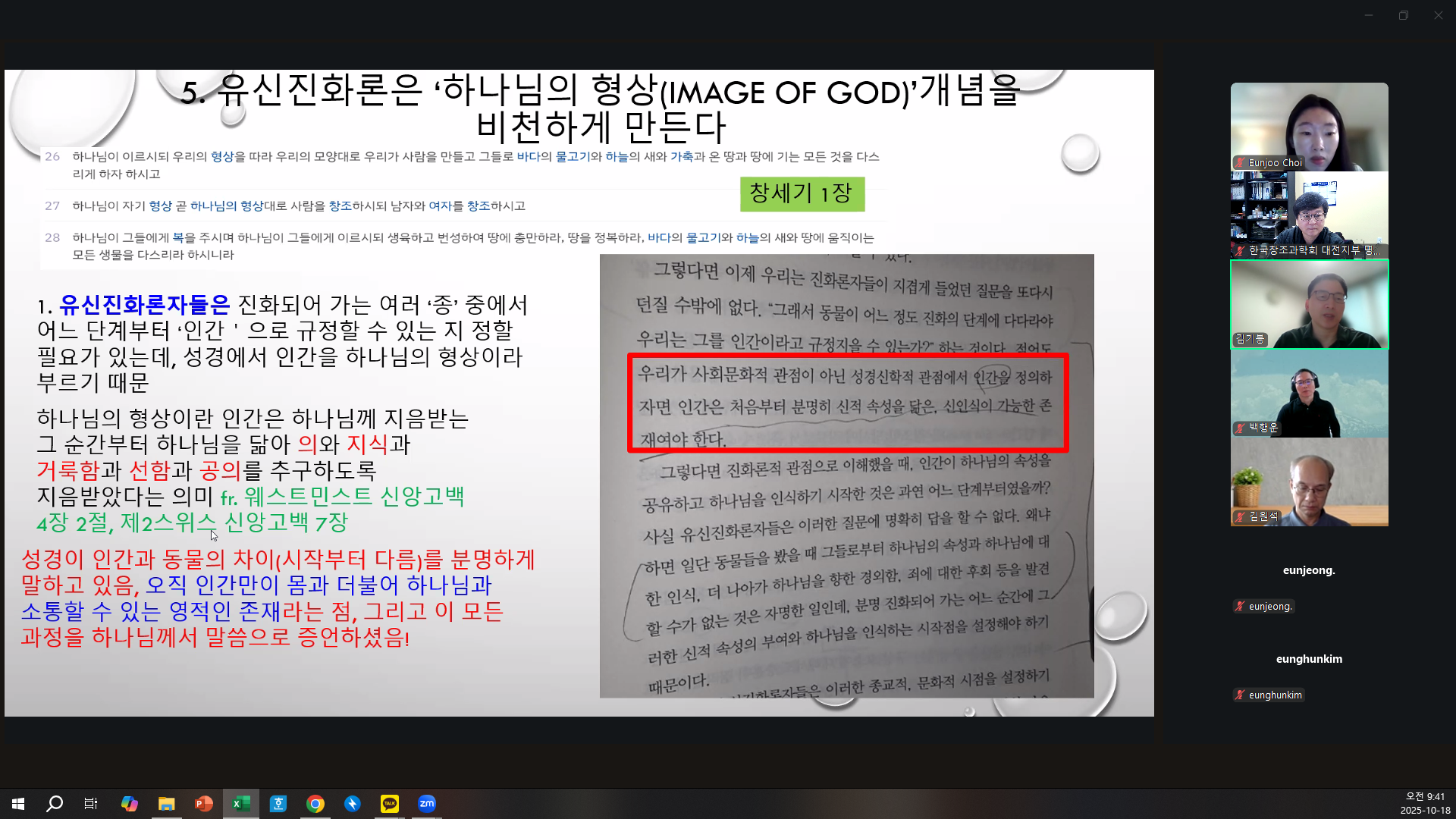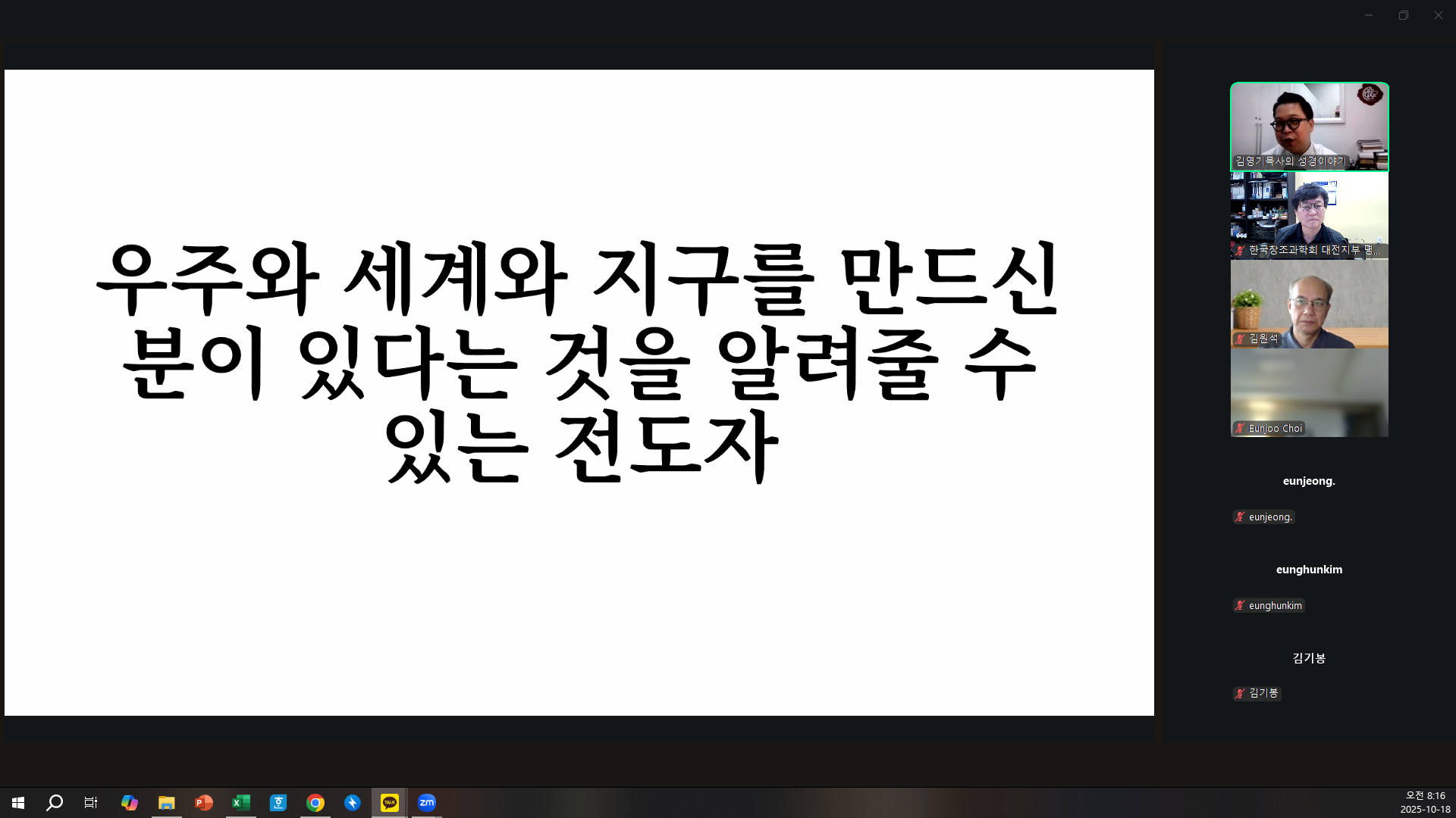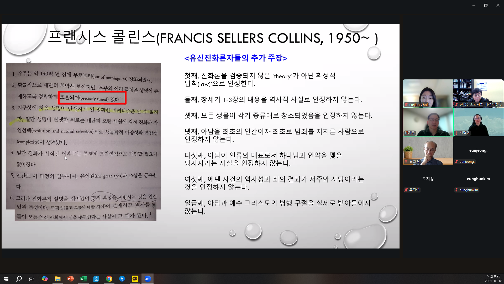모임 장소: 한국창조과학회 대전지부 세미나실 (대전 유성구 북유성대로 190 한국침례신학대학교 강의동<4번 건물> B1) or 비대면(zoom) 모임