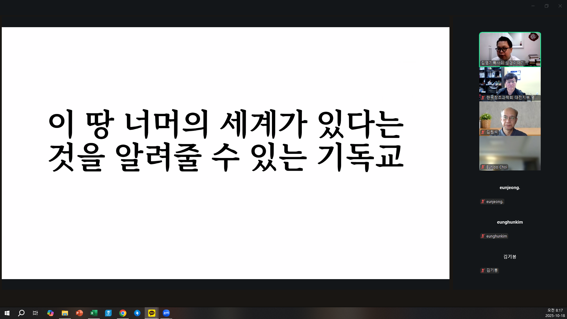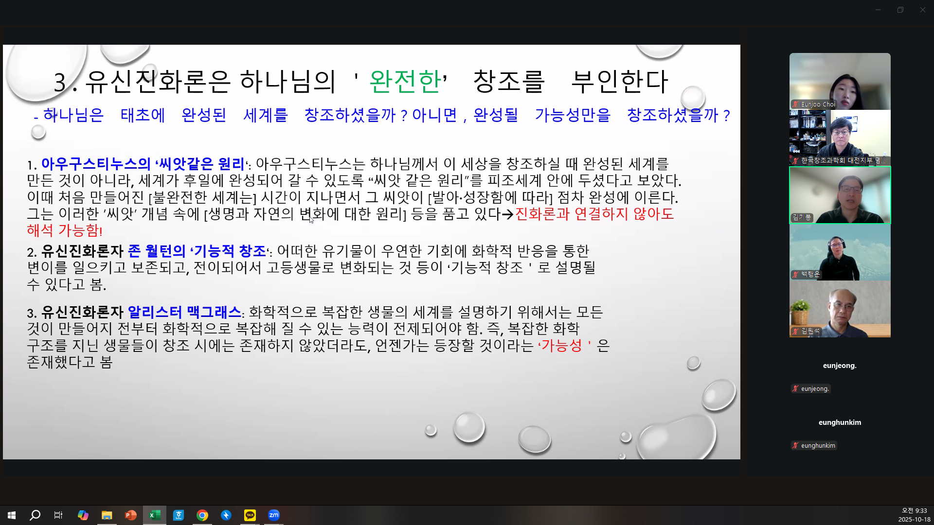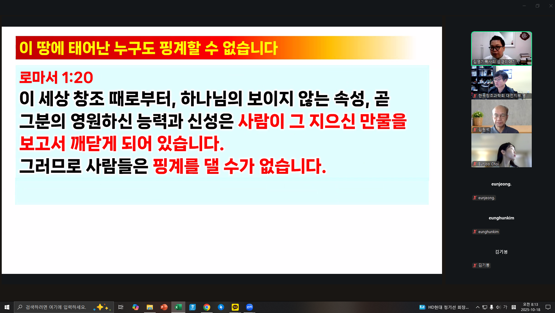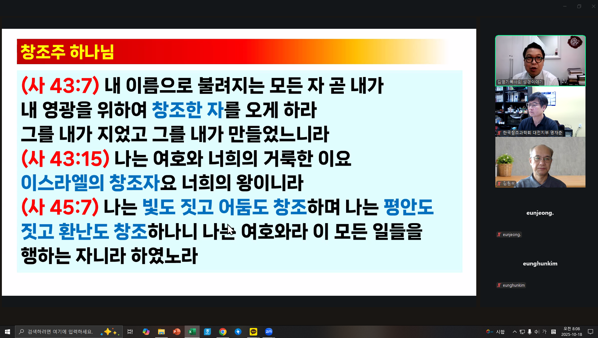 모임 장소: 한국창조과학회 대전지부 세미나실 (대전 유성구 북유성대로 190 한국침례신학대학교 강의동<4번 건물> B1) or 비대면(zoom) 모임