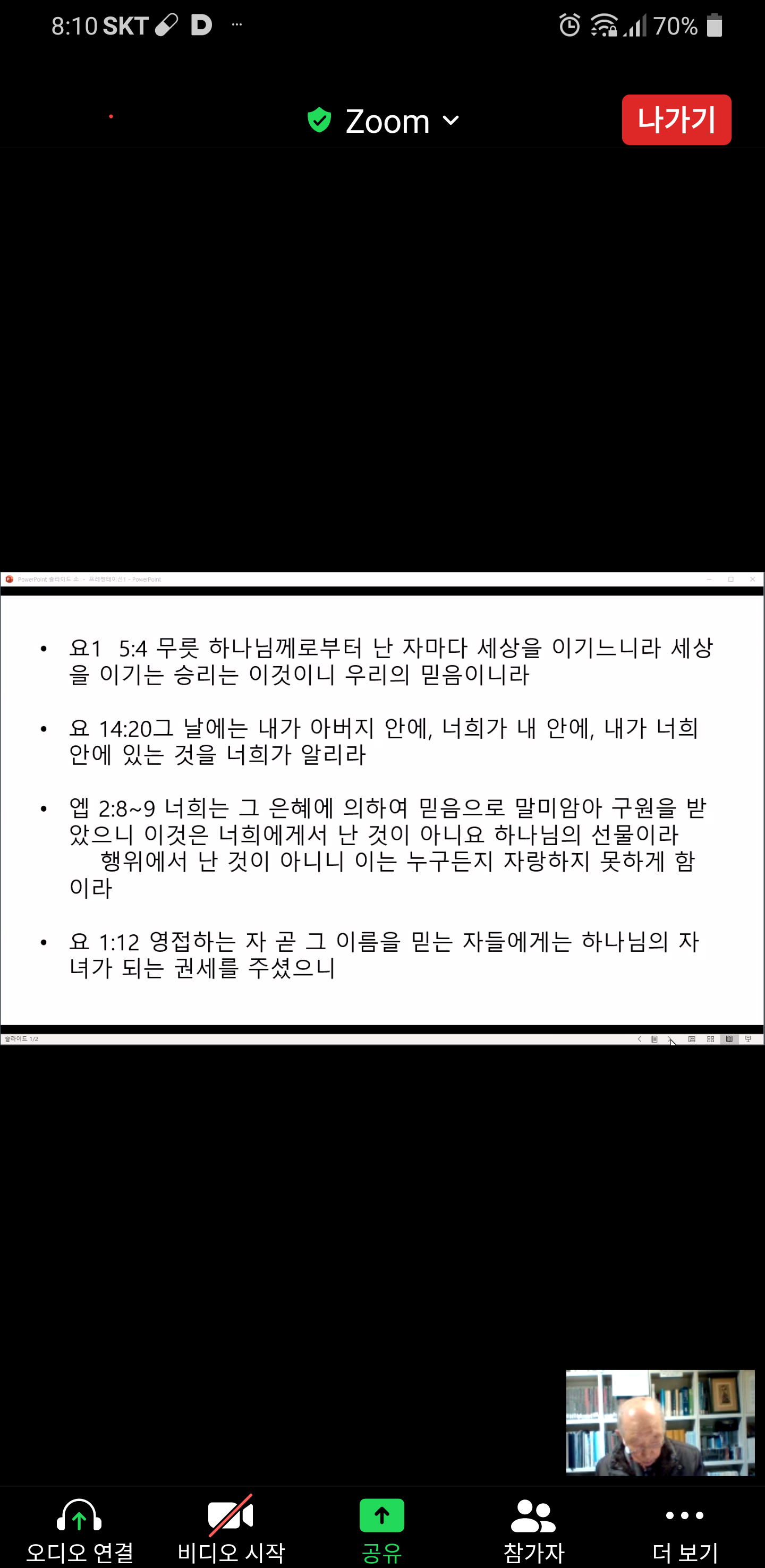 아무도 없는 세미나실에서 노트북 화면을 놓고 말씀을 나누시긴 처음이셨을텐데, 성실하게 준비한대로 마무리 지으셨습니다.