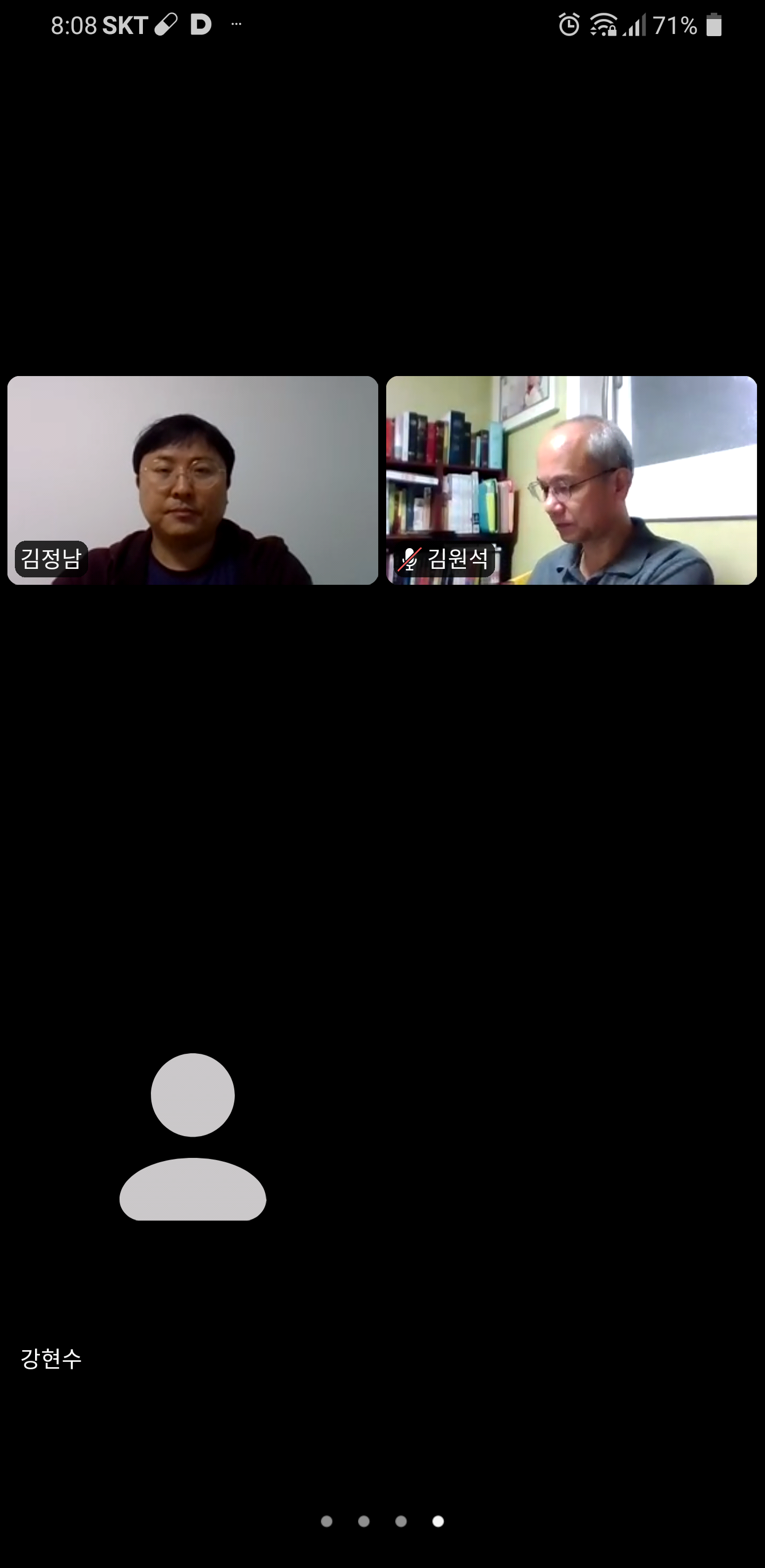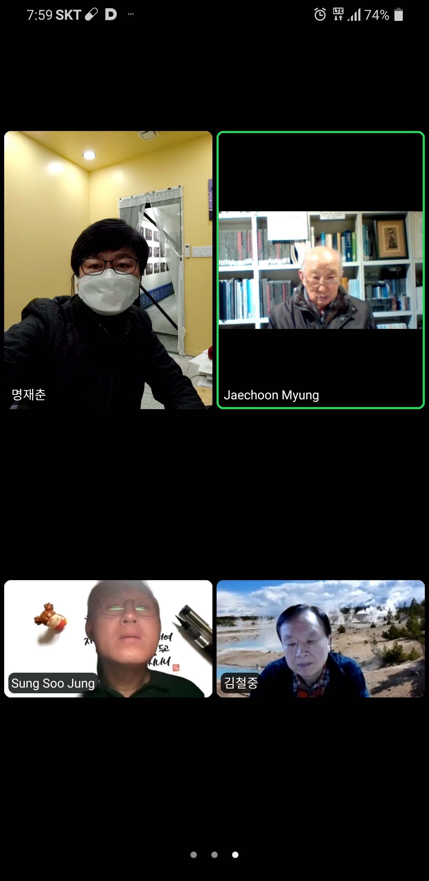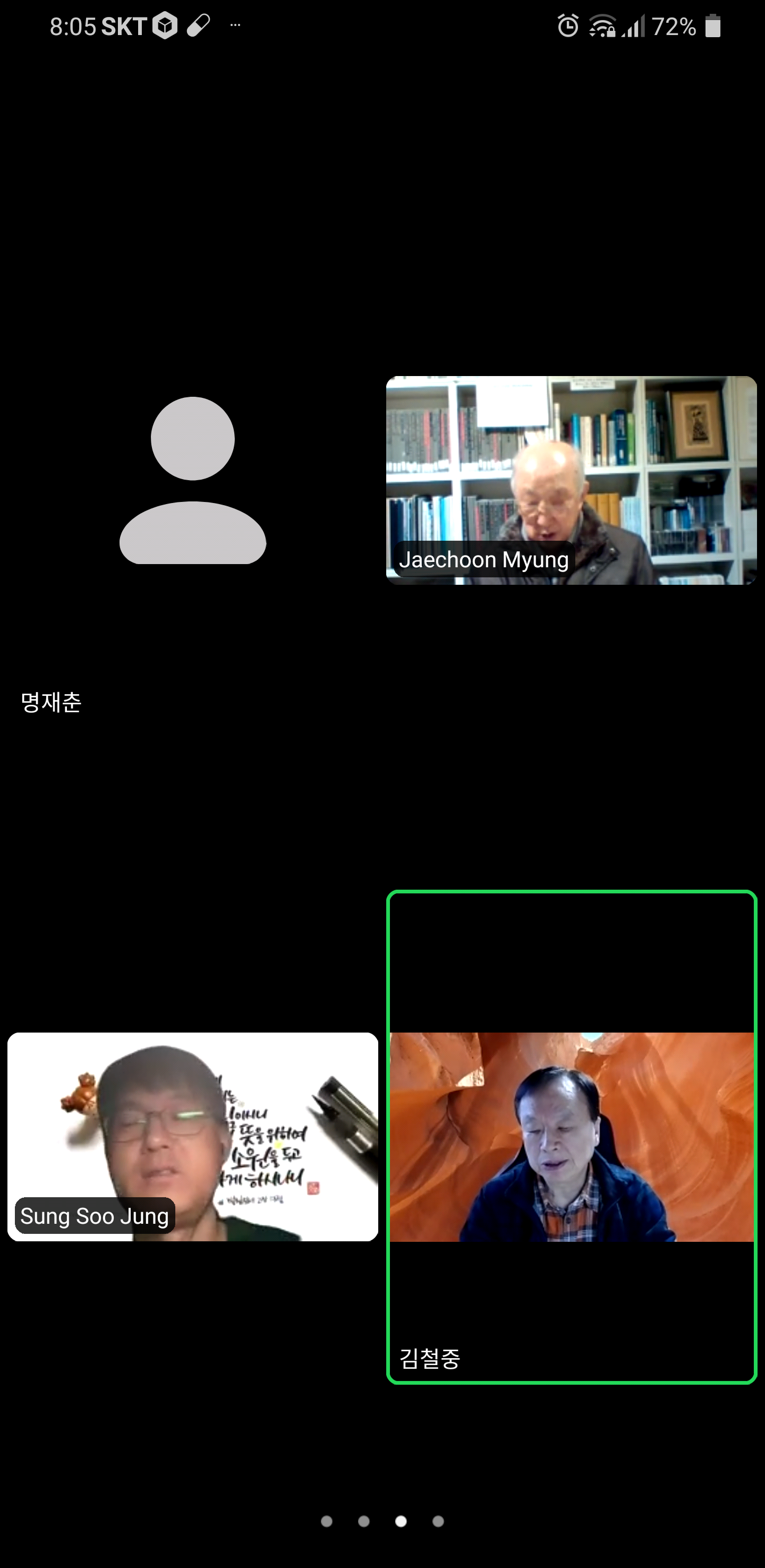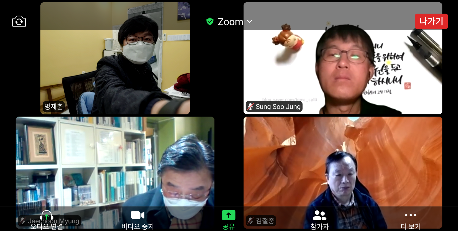 7시 50분경 zoom에 접속하니 벌써 정성수 지부장과 김철중 회원이 접속해 계시더군요~^^
